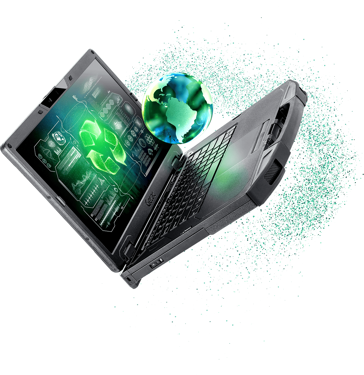 S510AD 为強固型笔记本电脑树立可持续发展新标杆。通过MIL-STD-810H 和 IP53 认证,可抵御水、灰尘、强烈振动、3 英尺跌落、严酷温度等考验,机箱采用 45% 以上的消费后回收(PCR)材料,在供应链中减少能源消耗、碳排放和电子废料,让其设计可持续性跻身市场强固型笔记本前列。