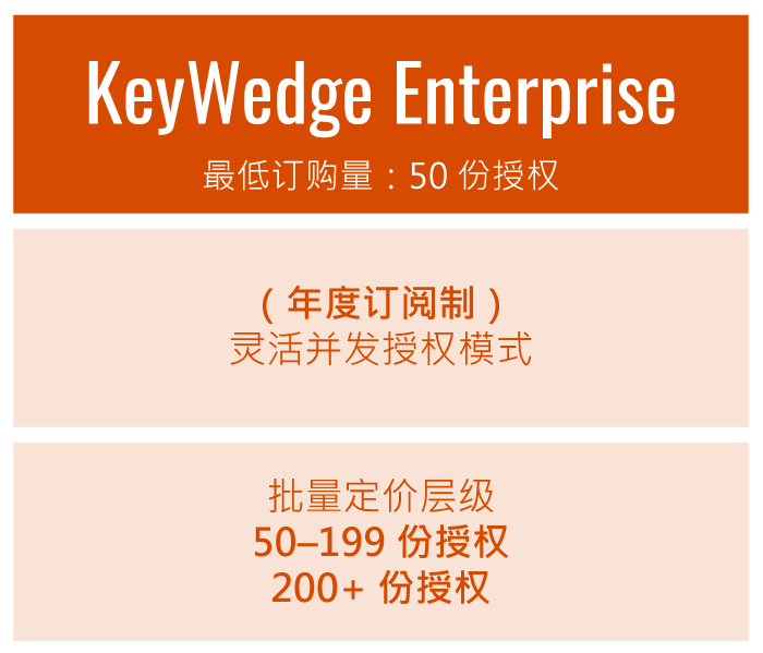 KeyWedge 提供一种具有成本效益的解决方案,可扫描所有主要的 1D 和 2D 条码符号。Pro 和 Enterprise 授权灵活多样,可根据您的具体需求进行调整。